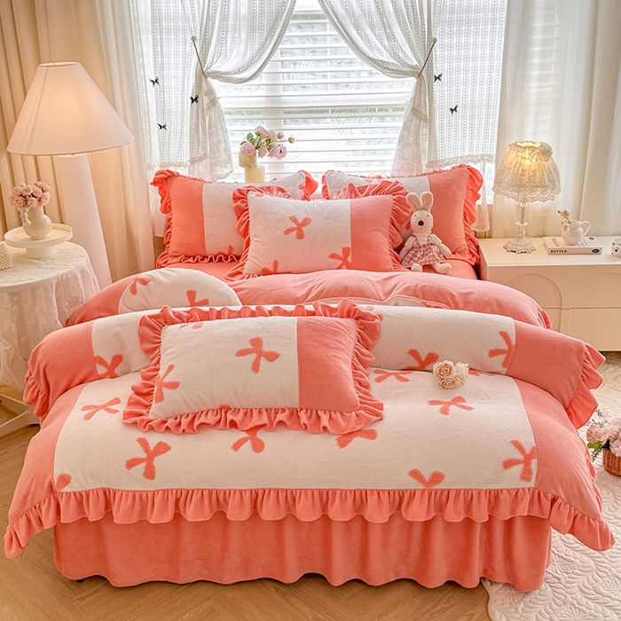 - 2024新款韩版蕾丝磨毛床裙四件套