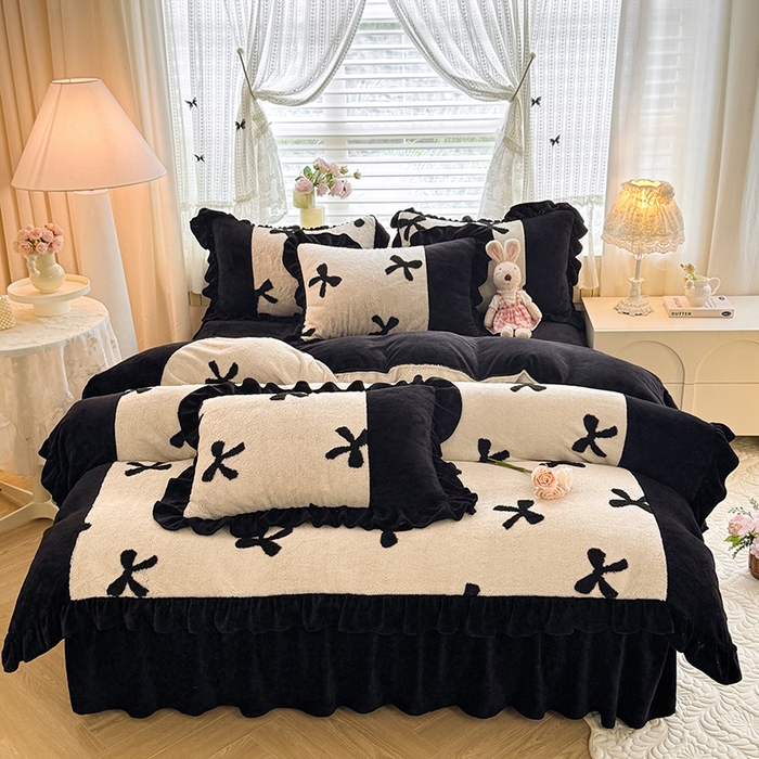 - 2024新款牛奶绒雪纺边四件套-一帘幽梦